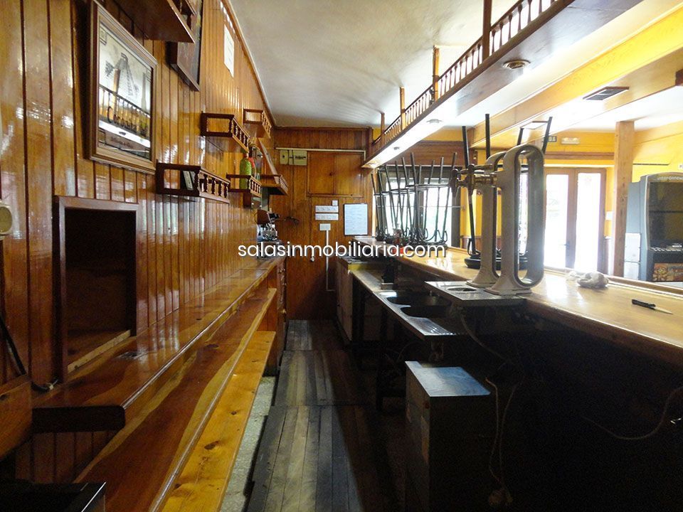 El bar cuenta con una amplia barra, mesas y sillas, estufa de pellets, zona de juego, cocina equipada y aseo con ventana. Dispone además de dos salas anexas que pueden separarse con un biombo de madera. El local es muy luminoso, con muros anchos, ventanas de aluminio con doble cristal y persianas de aluminio. Tiene tres fachadas, salida a la calle trasera, porche exterior ideal para terraza y aparcamiento a pie de carretera. Los suelos son de terrazo y plaqueta, lo que facilita su mantenimiento.