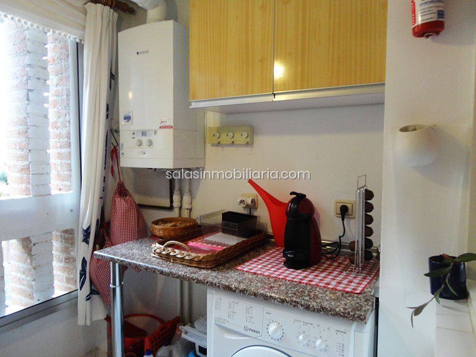 La vivienda dispone de un hall de entrada que da a una cocina totalmente amueblada y equipada, con todos los electrodomésticos, mesa y sillas de madera maciza, de la cocina se accede a una terraza cerrada (lavadero-despensa), un espacio muy útil para almacenaje.